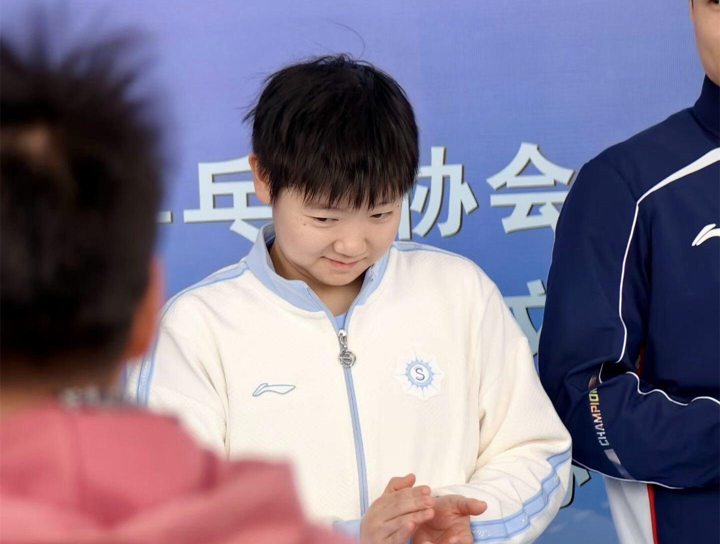 孙颖莎穿上了白色的外套,她和小朋友们一起玩得很开心,脸上不时浮现笑容。在活动进行期间,孙颖莎甚至一度欢乐到笑弯了腰。不得不说,孙颖莎身上有着天然的亲和力。这或许也是她成为现役人气最高的中国运动员之一。