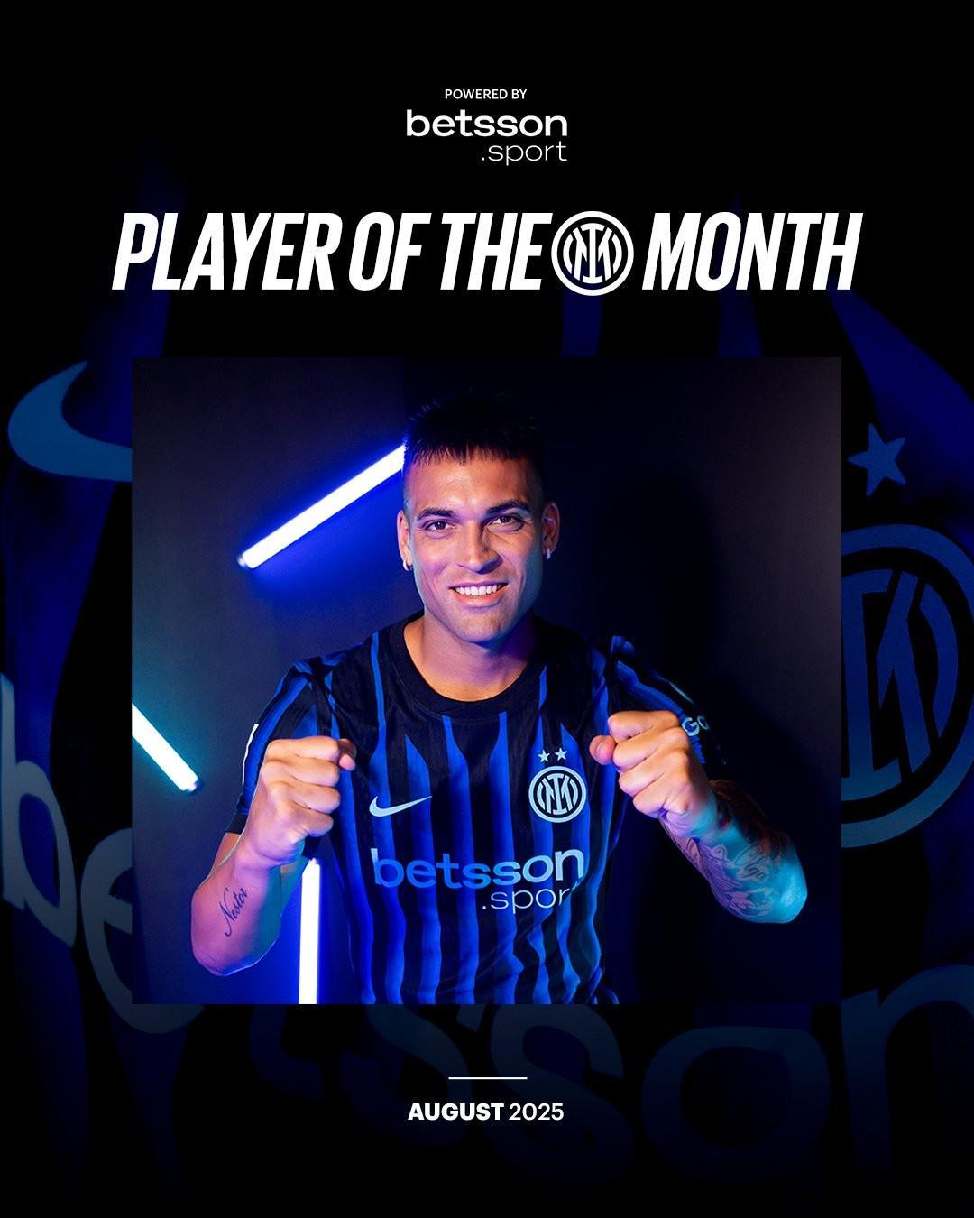 北京时间9月12日,国际米兰官方宣布,他们的队长劳塔罗-马丁内斯当选球队8月队内最佳球员。