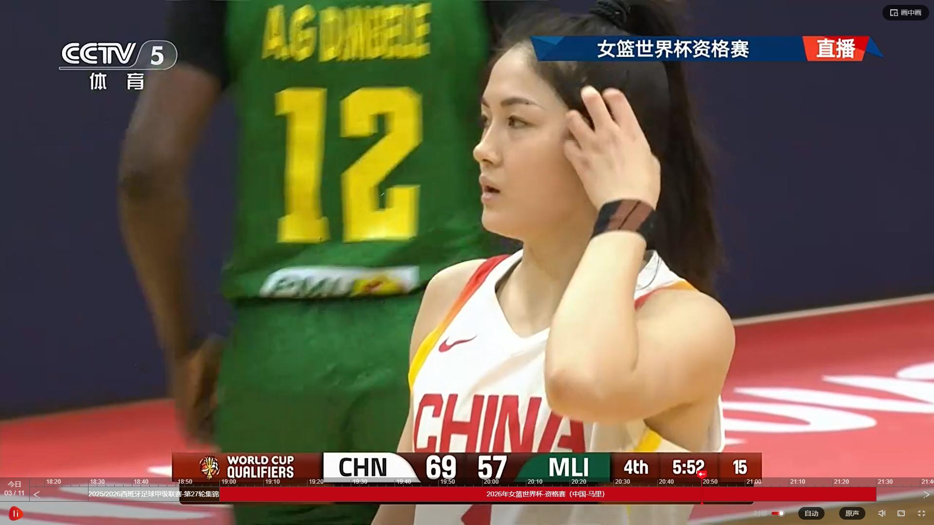 今天中国队上半场打得并不好,差在首发控卫,未能组织起有效进攻,第一节马里队频频冲击中国队,大部分时间处于领先,之后中国队渐渐找到状态,把比分追成20平,第二节上双塔的李月汝和韩旭,终于拉开比分,郑微赞扬说中国队上半场打得最好的一段时间就是上双塔的这段时间,半场结束反超马里队6分。下半场中国队表现比上半场更好,一度领先15分,最终以13分的优势击败对手。